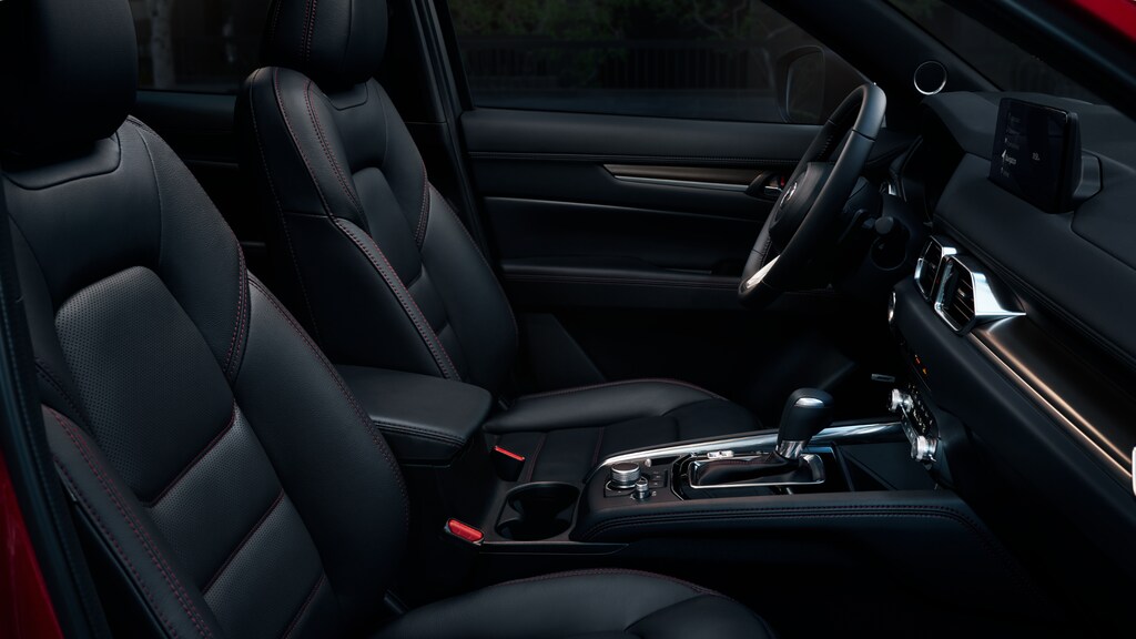 The interior of the 2025 Mazda CX-5 is designed for functionality, with five-passenger seating capacity and multiple power adjustment options. Seat configurations include 6-way manual adjustment for the driver on base trims and 8-way power adjustment with lumbar support and memory on higher trims. The front passenger seat can be manually or power adjustable depending on model grade.