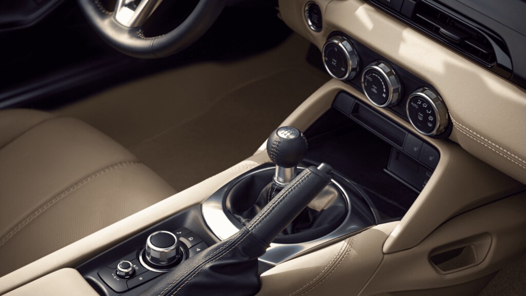 The cabin of the 2025 Mazda MX-5 Miata is configured to support driver focus. All essential controls are positioned for minimal distraction and maximum accessibility. The 2025 model introduces a center-mounted color display. This system integrates Apple CarPlay® and Android Auto™ offers both wired and wireless connectivity. Audio, navigation, and communication functions are accessible through both touchscreen and rotary control inputs.