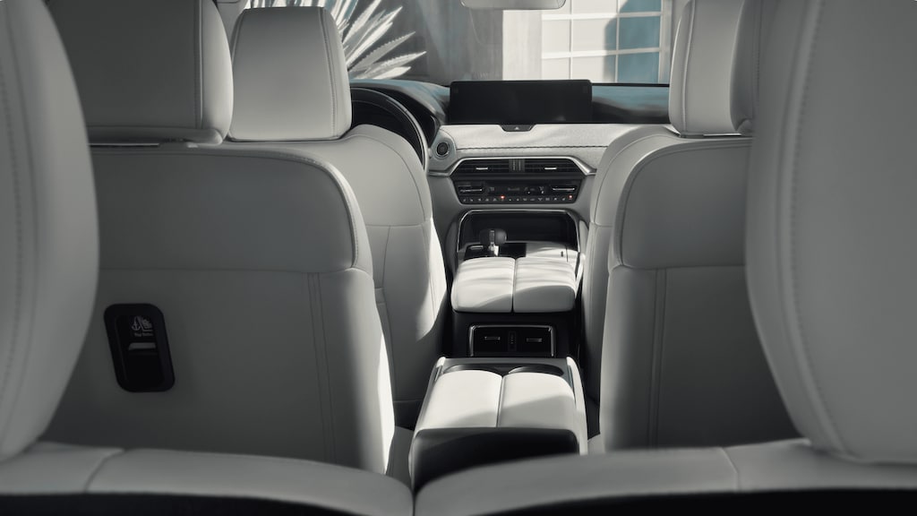 The infotainment system is built around either a 10.25-inch or a 12.3-inch full-color center display, depending on the trim. A 12.3-inch fully digital meter display is included in most mid- and upper-level trims. A head-up display appears on upper trims with a large view format that projects speed, navigation prompts, and active safety alerts. Mazda Connected Services are accessible across the lineup with available remote engine start, remote door locking and unlocking, hazard light activation, vehicle status alerts, navigation updates, and emergency notification features. Wireless phone charging appears on many trims, and all trims include multiple USB-C ports across the first, second, and third rows. Audio systems include an eight-speaker system on lower trims and a Bose twelve-speaker system on upper trims.